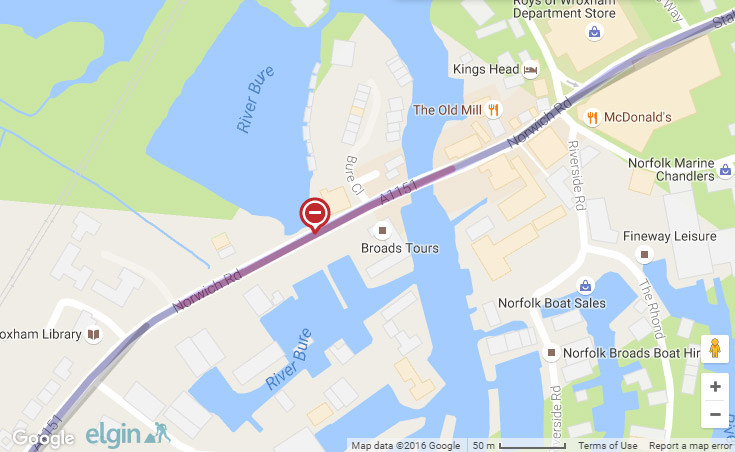The A1151 (Norwich Road) in Wroxham is scheduled to be resurfaced on, or soon after, 25th September 2016 for 1 day, between 7am – 7pm. From the Norfolk County Council website, we understand that the bulk of the work will be being done on the bridge, including resurfacing. The Council’s website also states that access to businesses will be maintained.